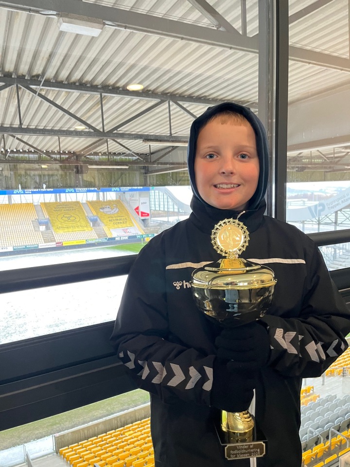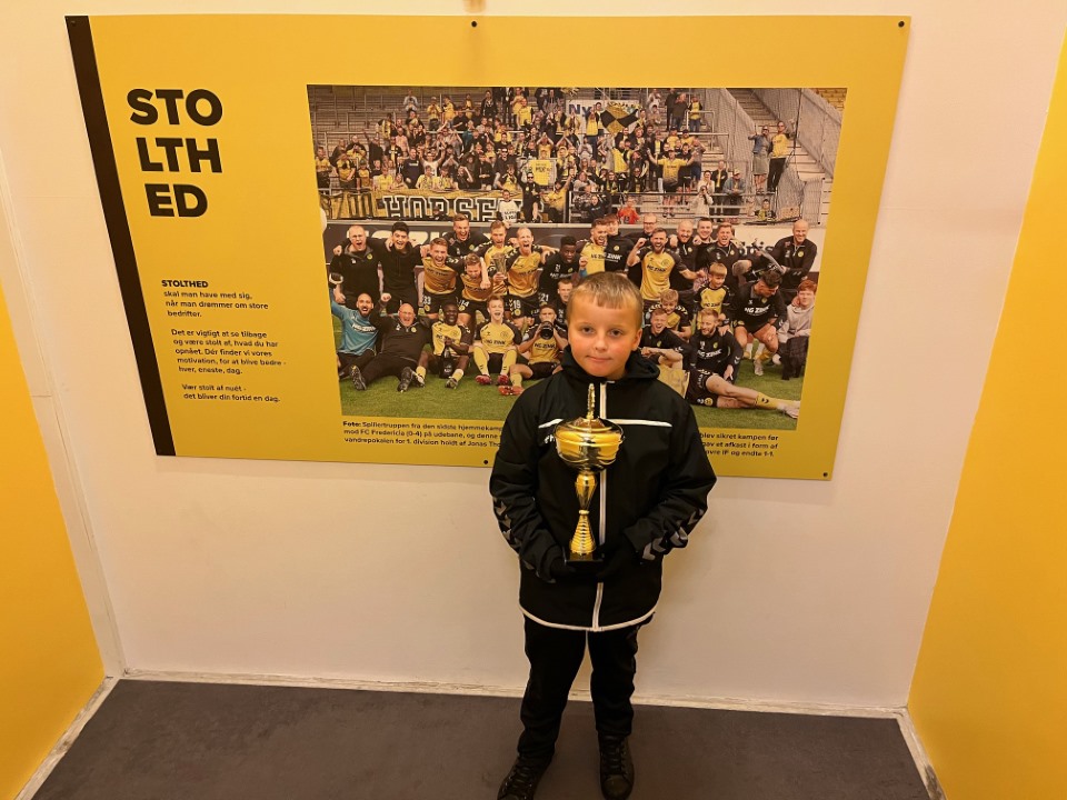 Xander kastede sig ud i det hele med støtte fra Dorthe. Han skrev beskeder til klassen, kontaktede både AC Horsens og FC København for sponsorater – og fik svar. FCK sendte stickers, og ACH leverede en flot pokal.